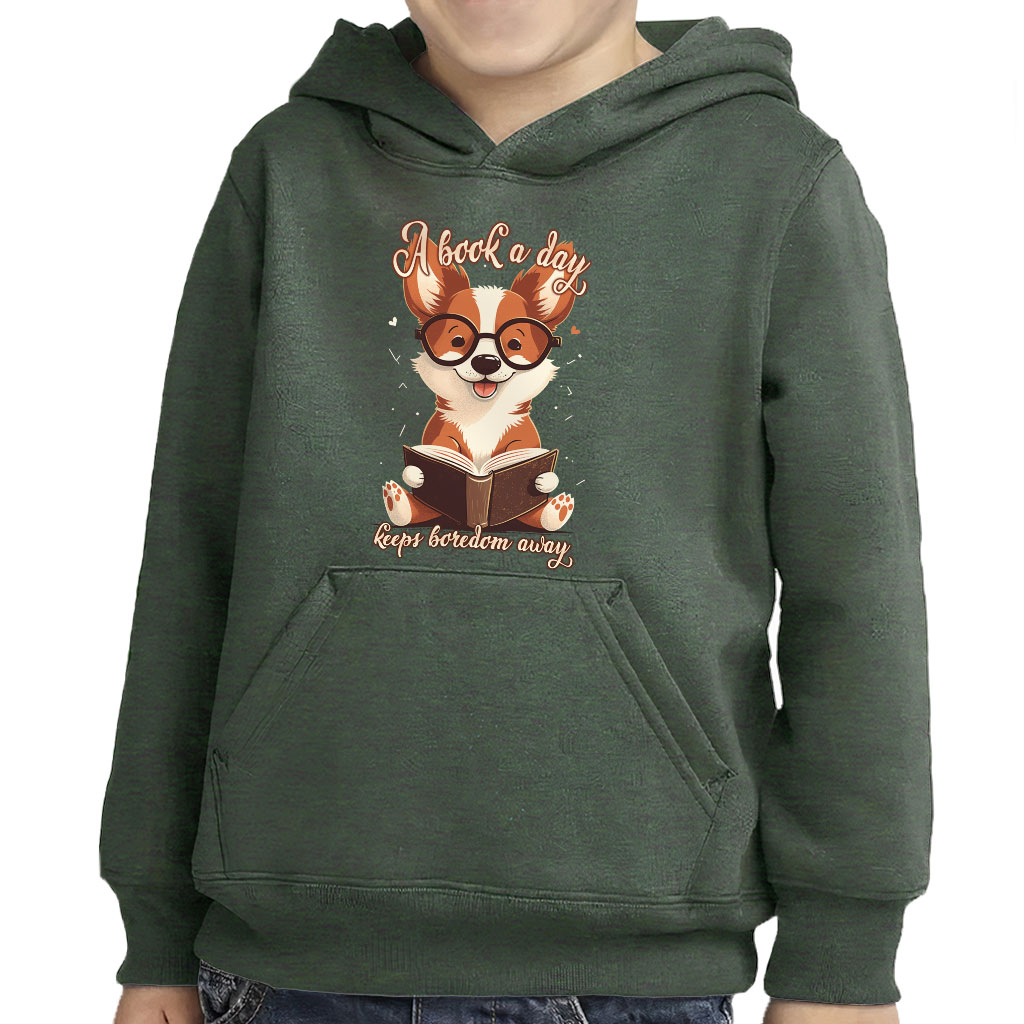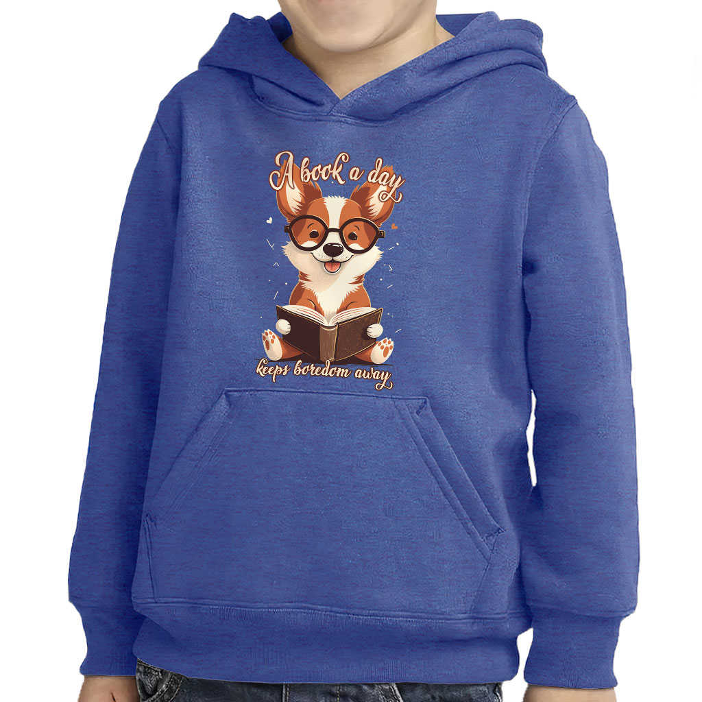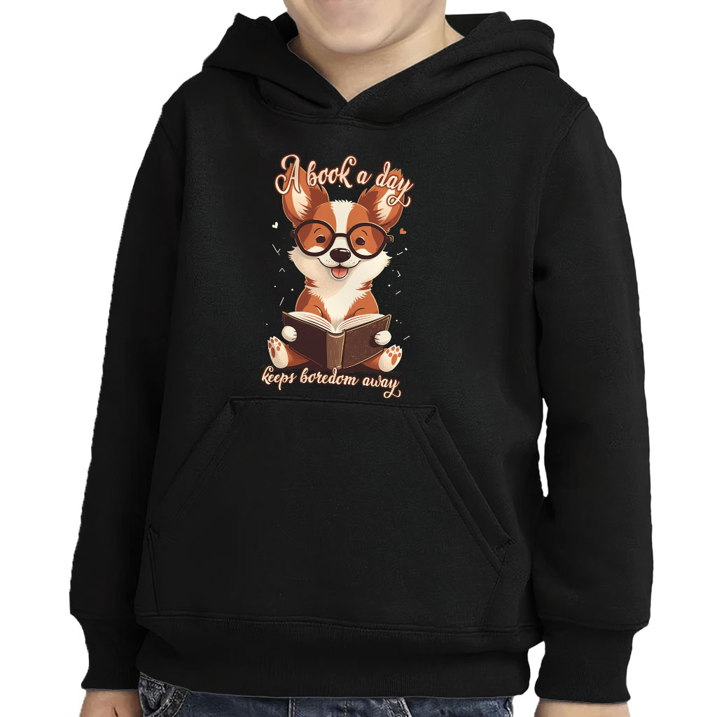 A Book a Day Toddler Pullover Hoodie – Corgi Print Sponge Fleece Hoodie – Themed Hoodie for Kids
