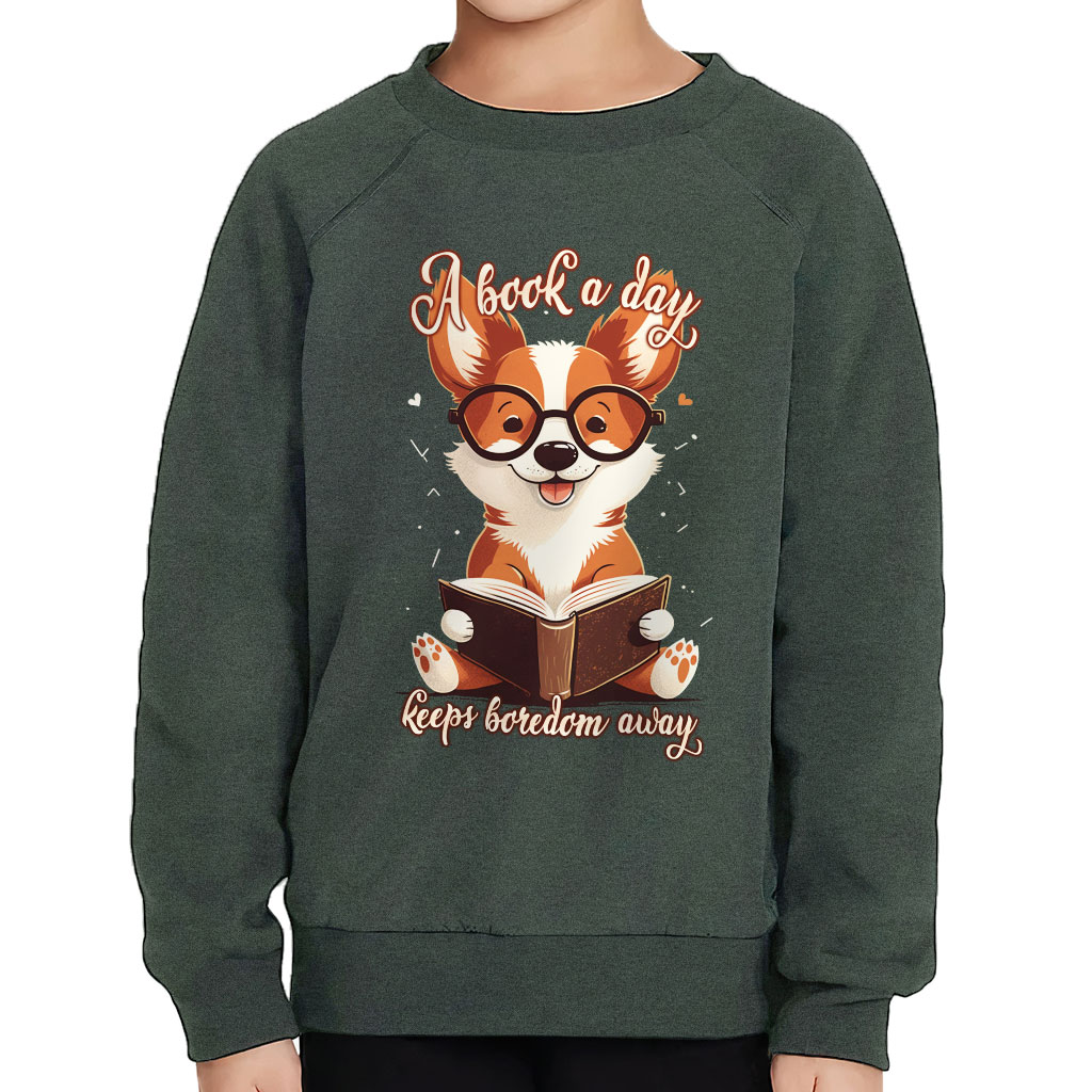 A Book a Day Toddler Raglan Sweatshirt keeps toddlers warm with comfort and style. We focus on soft cotton, safe fabric, and design. The collection abides by the belief that kids should always be comfortable, snuggly, and safe, free to do what they do best: play, sleep and thrive.