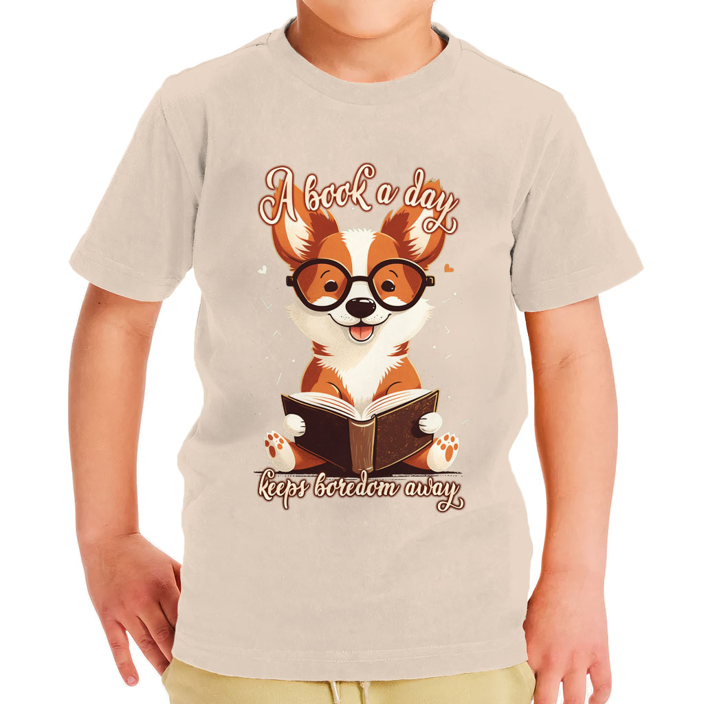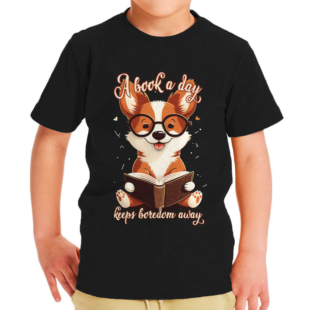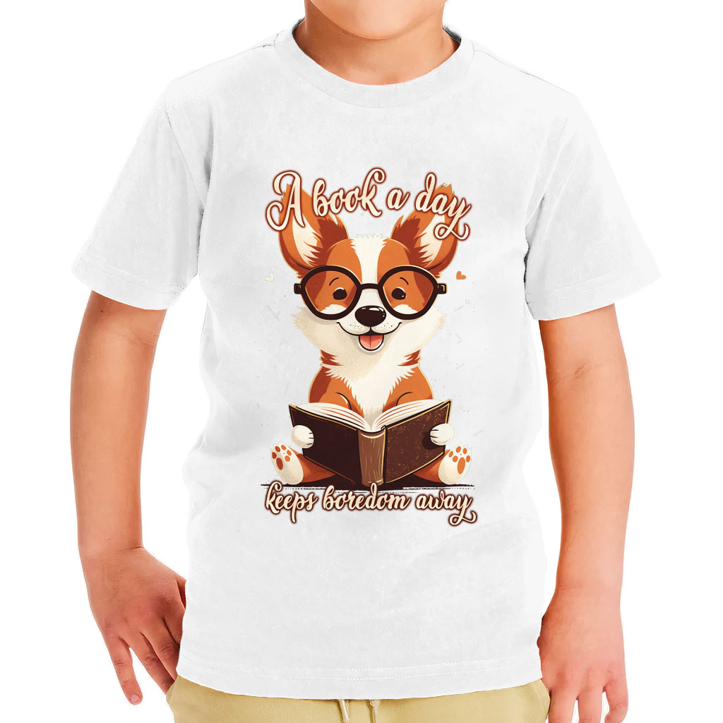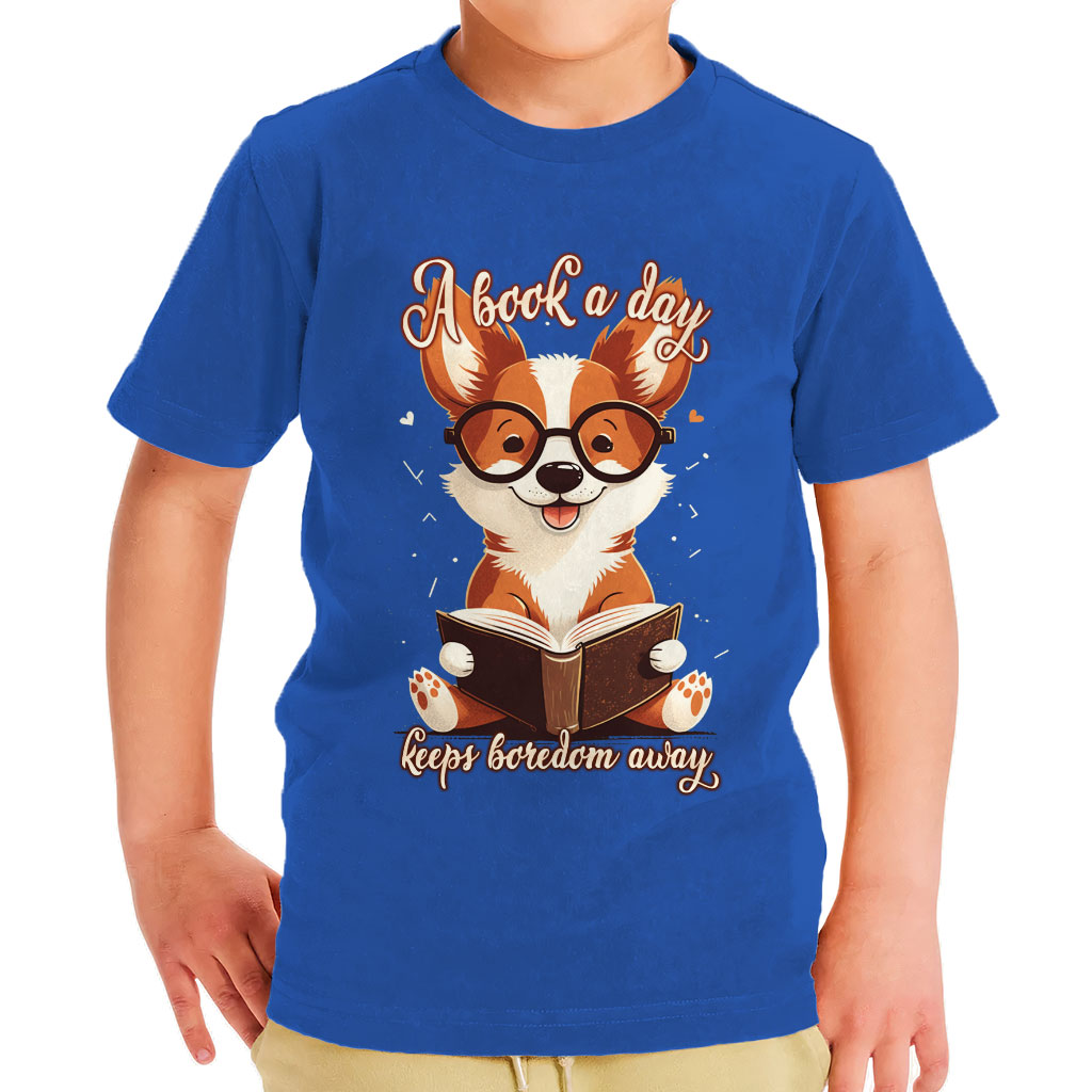 A Book a Day Toddler T-Shirt – Corgi Print Kids’ T-Shirt – Themed Tee Shirt for Toddler