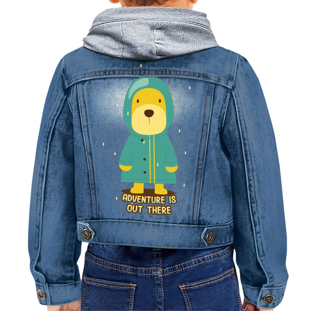 Adventure Is Out There Toddler Hooded Denim Jacket – Dog Print Jean Jacket – Unique Denim Jacket for Kids