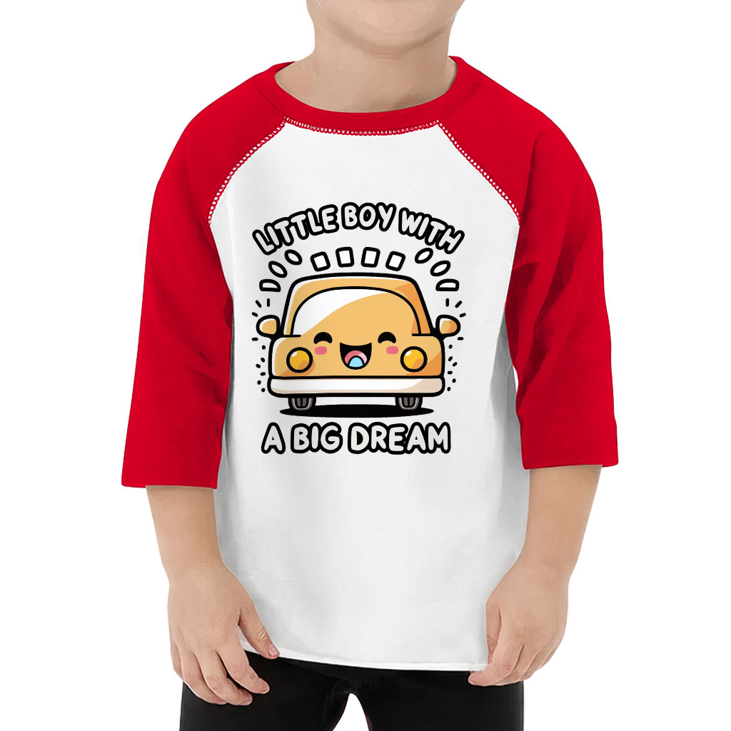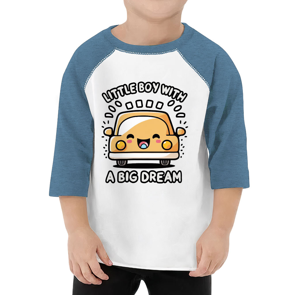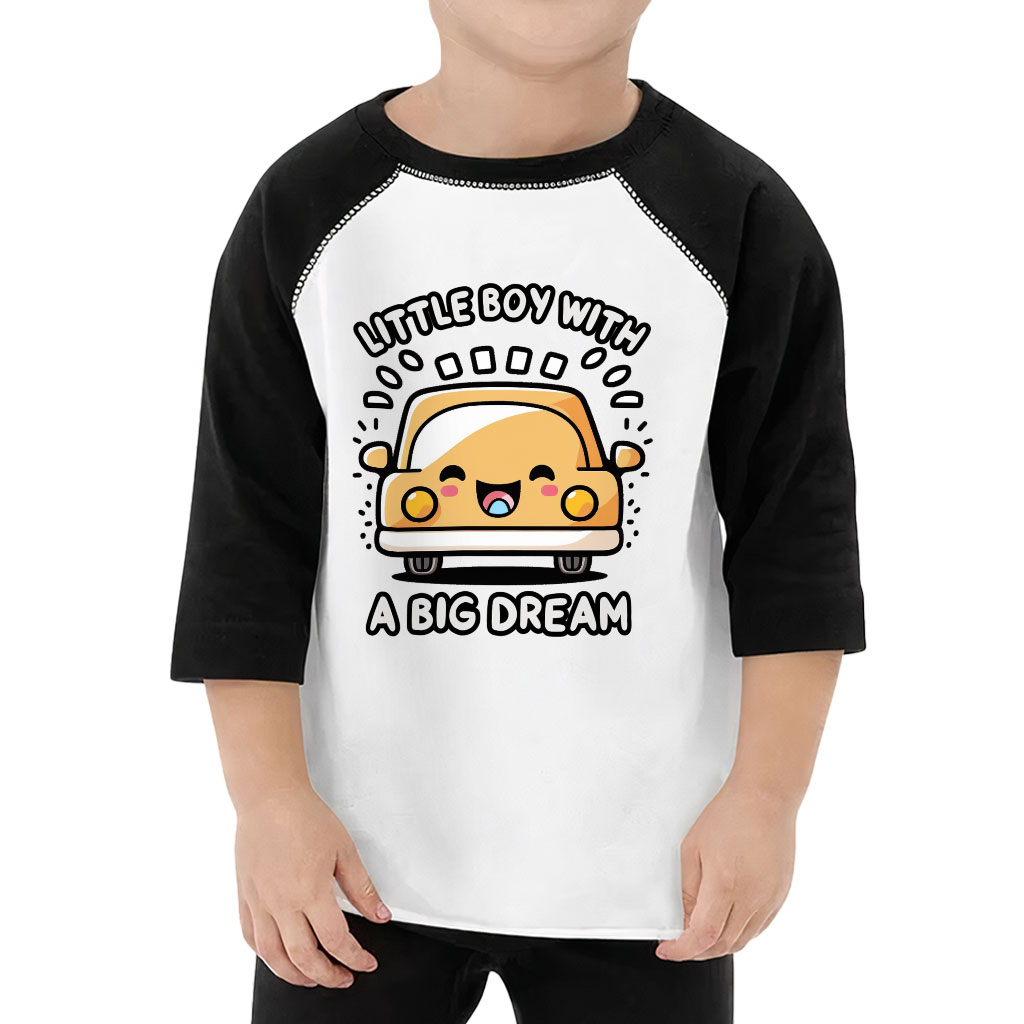 Big Dream Toddler Baseball T-Shirt – Funny Car 3/4 Sleeve T-Shirt – Colorful Kids’ Baseball Tee
