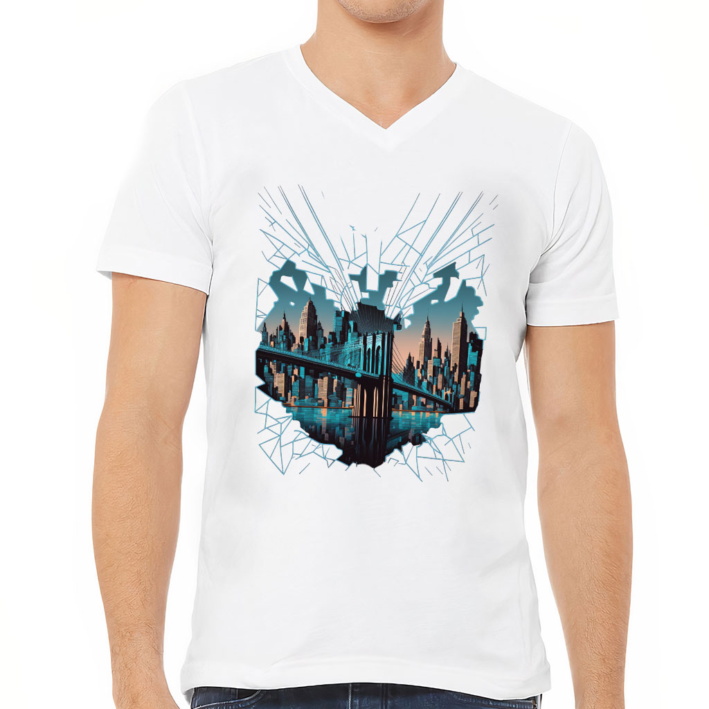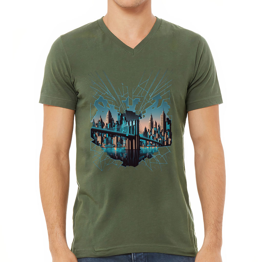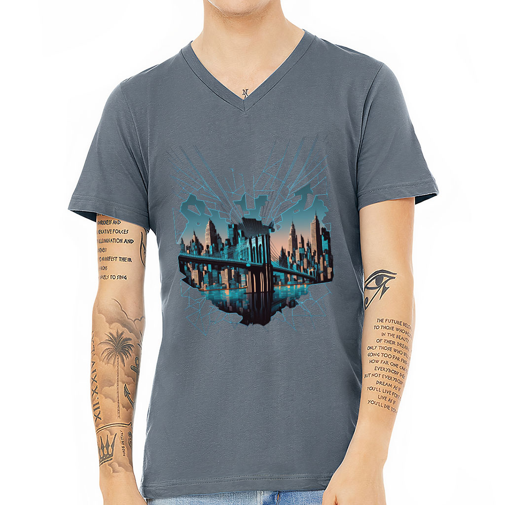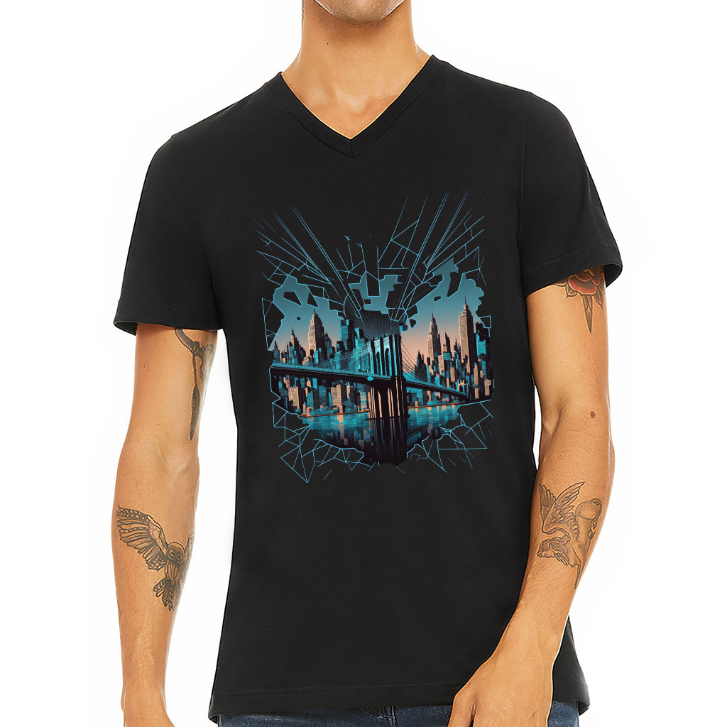 Brooklyn Bridge V-Neck T-Shirt – Illustration T-Shirt – Cool Design V-Neck Tee