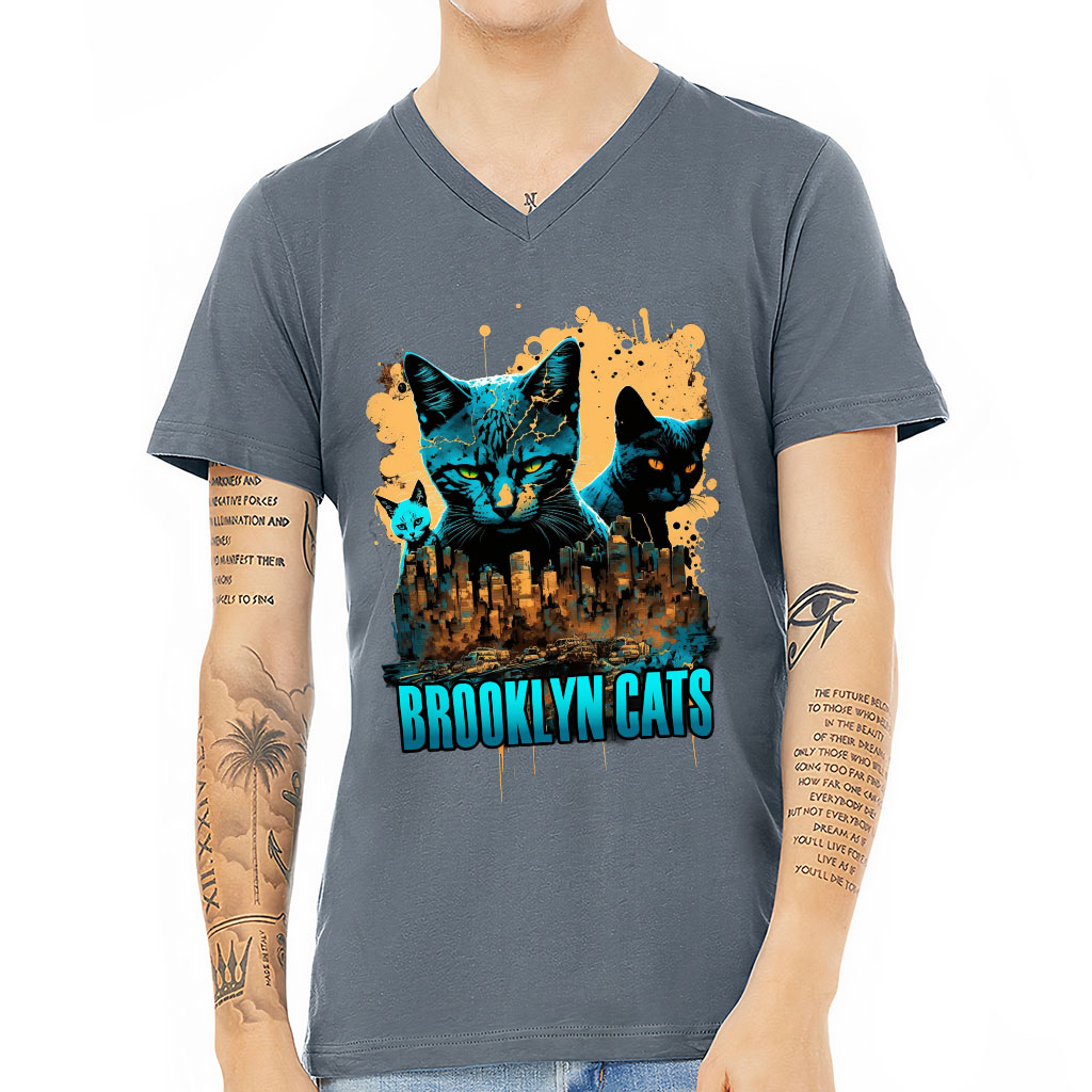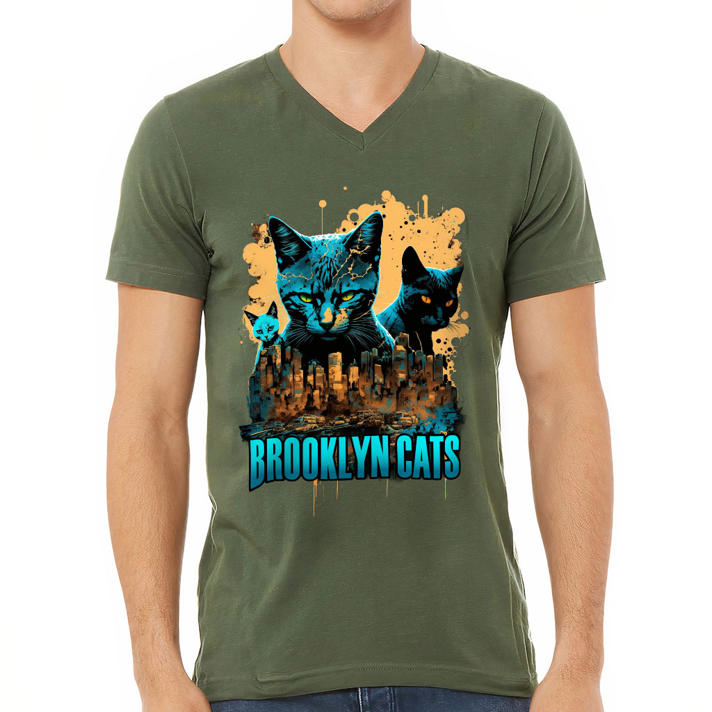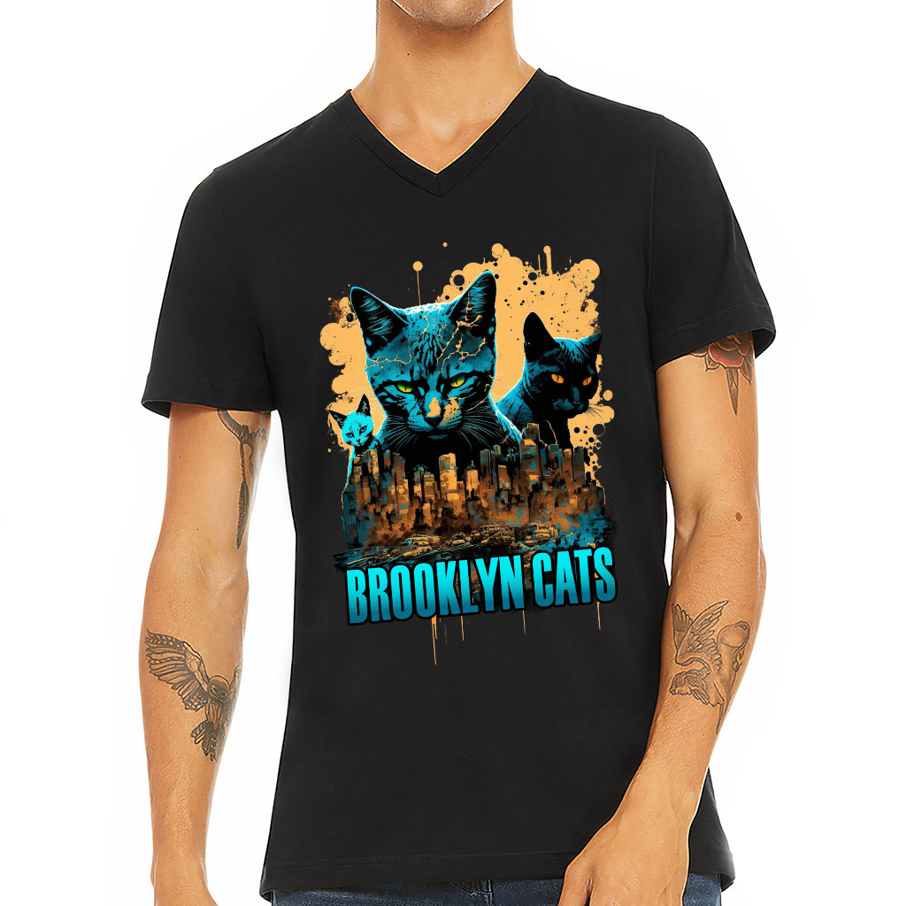 Brooklyn Cat V-Neck T-Shirt – Funny T-Shirt – Themed V-Neck Tee
