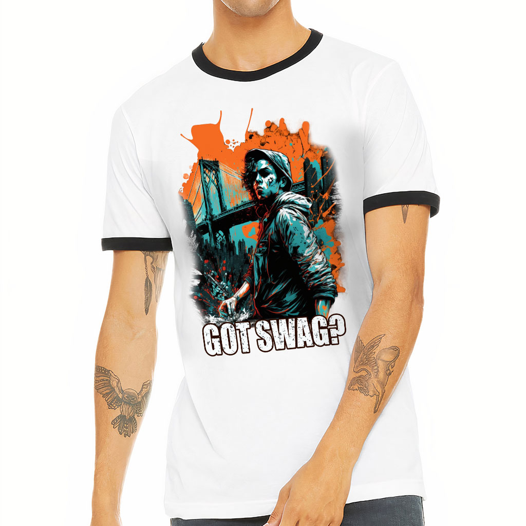 Are you looking to amp up your wardrobe? Cool Art T-Shirt is perfect for men who want to be seen and noticed. Crafted with great attention to detail, this men’s T-shirt features side-seaming and a retail fit that emphasizes the wearer’s shape without being overly constricting. Contrast ringer binding on both sleeves and neckline adds an extra touch of personality, making you stand out in any crowd. Whether paired with jeans or chinos, this shirt is guaranteed to turn heads no matter where your day takes you. Get yourself noticed today with Cool Graphic Ringer Tee!