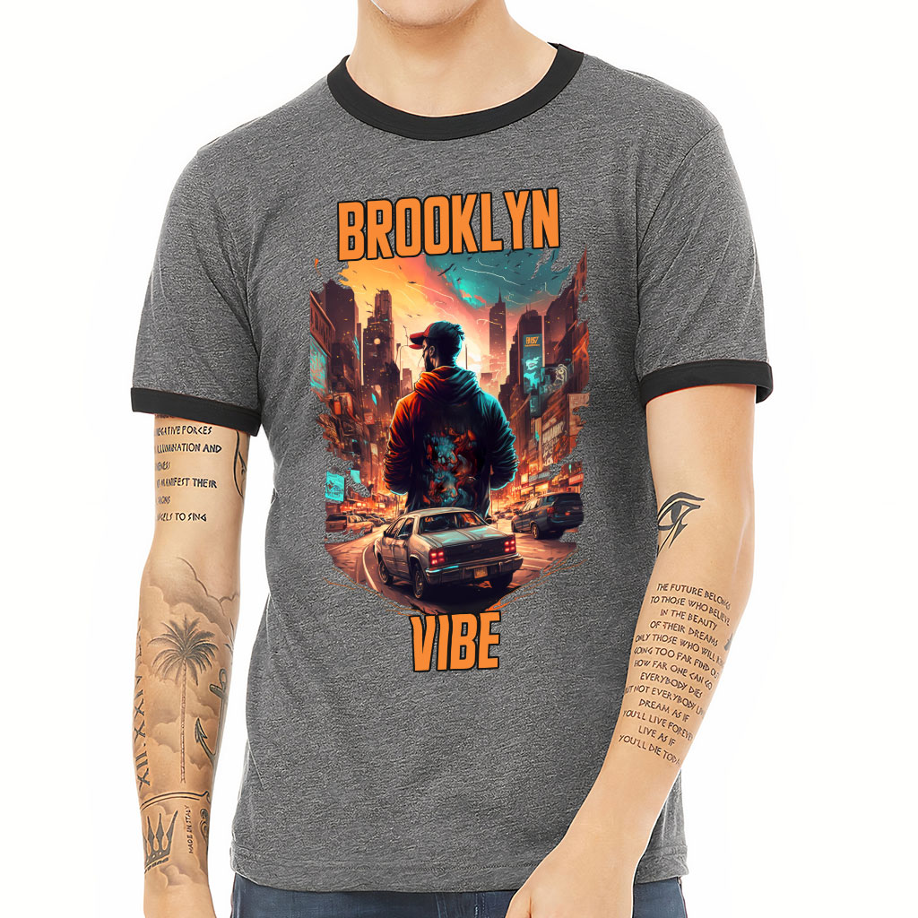 Brooklyn Ringer T-Shirt – Digital Art T-Shirt – Printed Ringer Tee