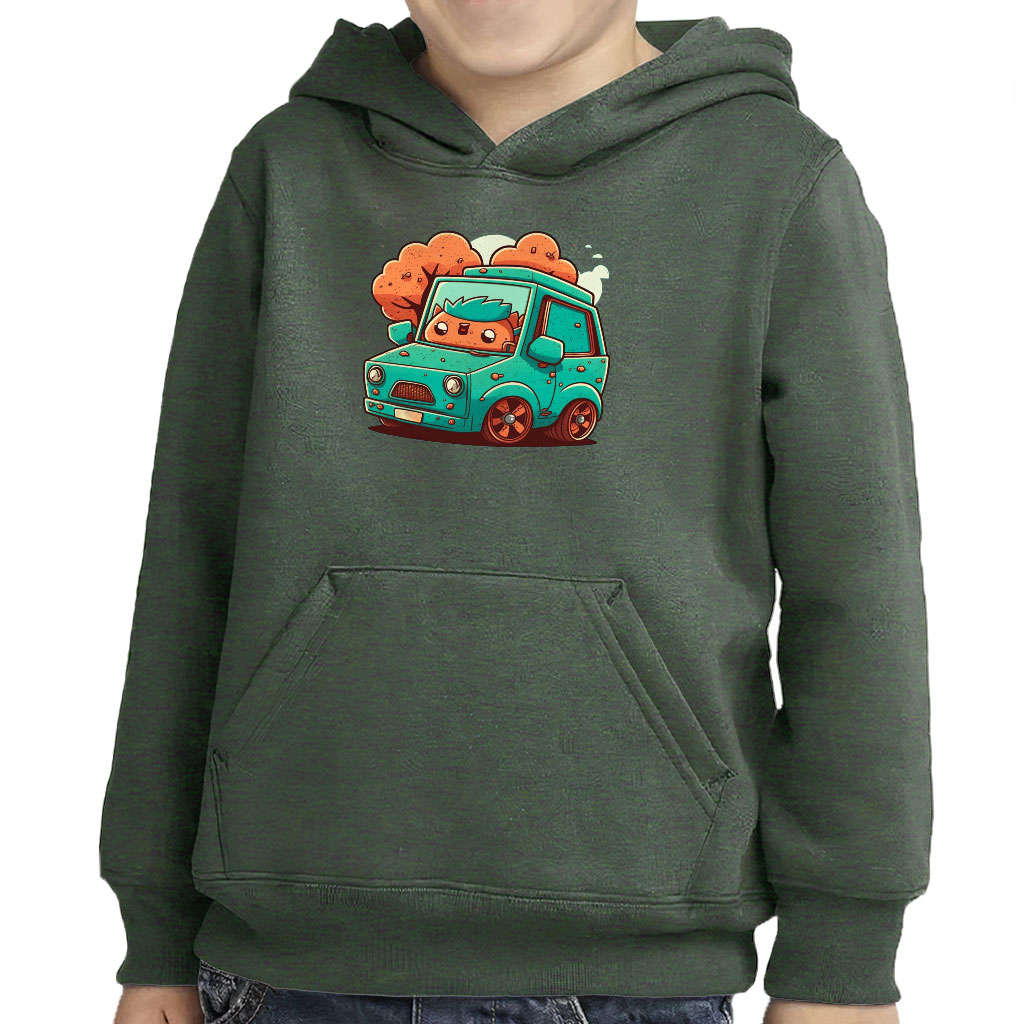 Car Graphic Toddler Pullover Hoodie – Cute Sponge Fleece Hoodie – Cartoon Hoodie for Kids