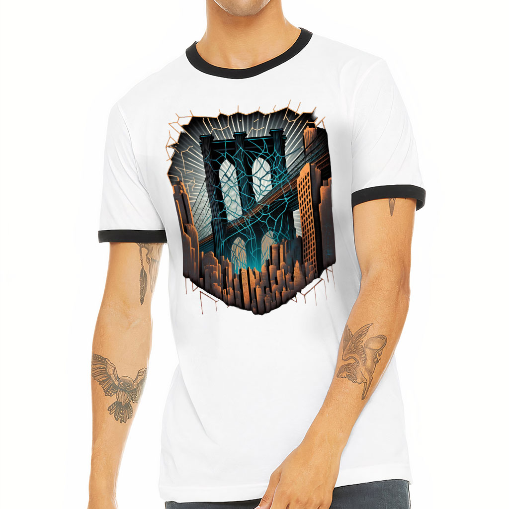 Cool Brooklyn Ringer T-Shirt – Bridge T-Shirt – Illustration Ringer Tee