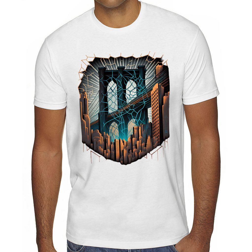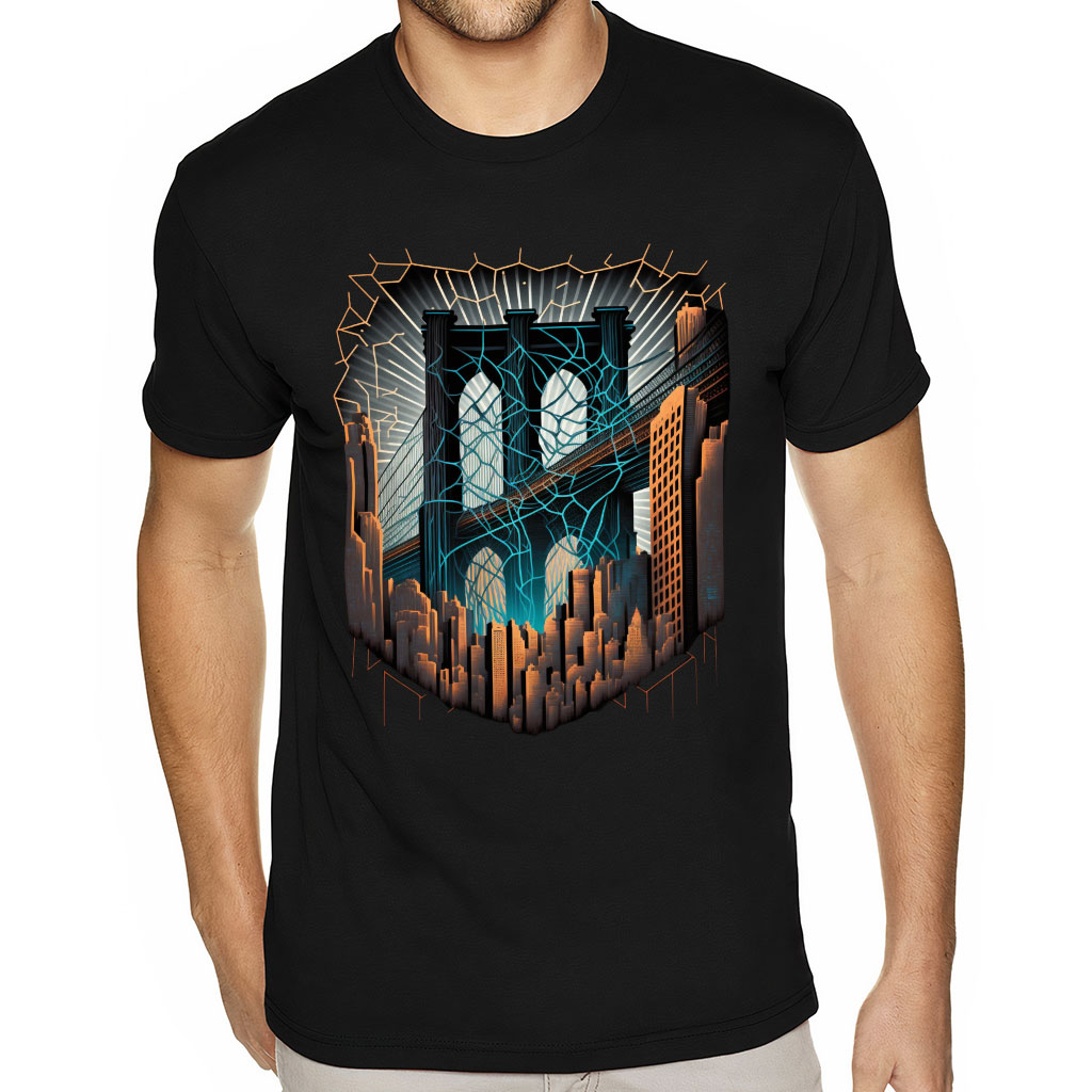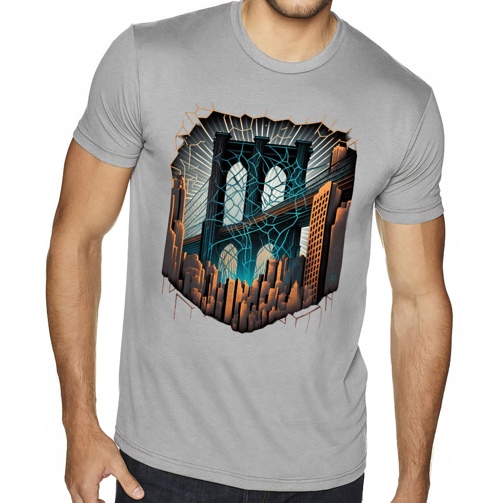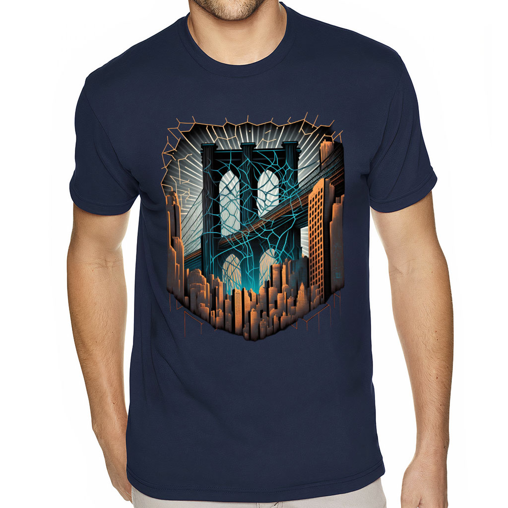 Cool Brooklyn Sueded T-Shirt – Bridge T-Shirt – Illustration Sueded Tee