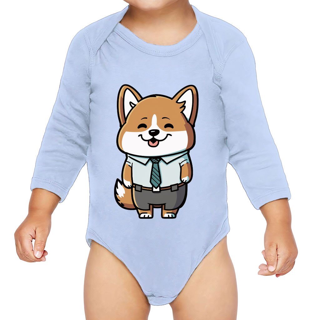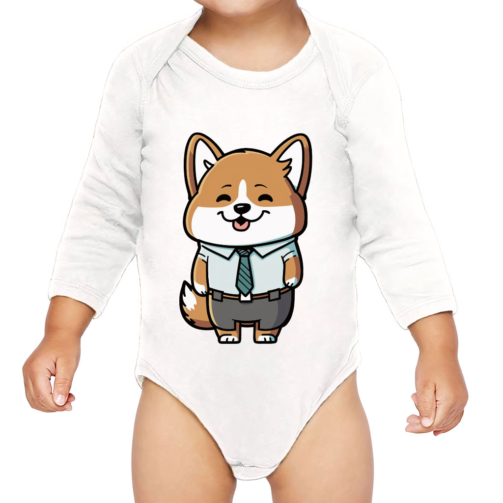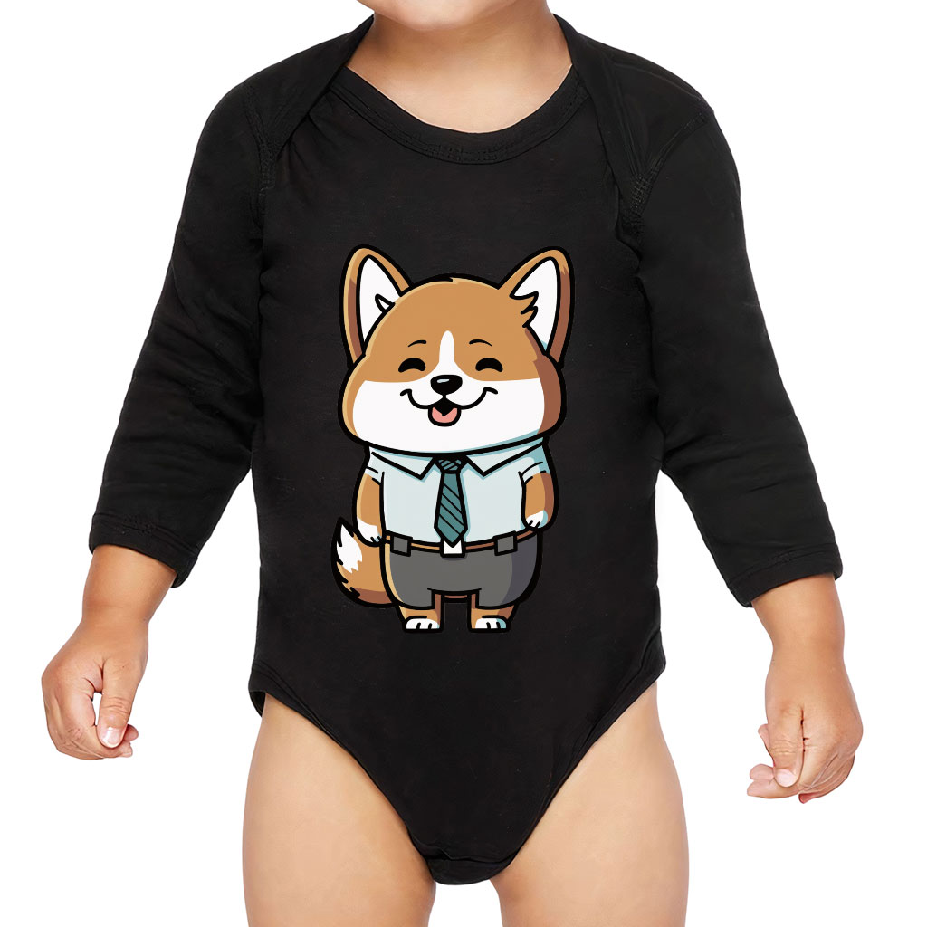 Corgi Print Baby Long Sleeve Onesie – Office Graphic Baby Long Sleeve Bodysuit – Graphic Baby One-Piece