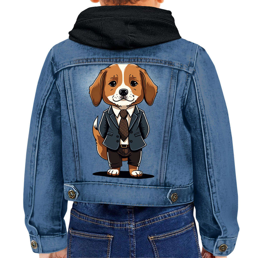 Cute Dog Print Toddler Hooded Denim Jacket – Unique Jean Jacket – Colorful Denim Jacket for Kids