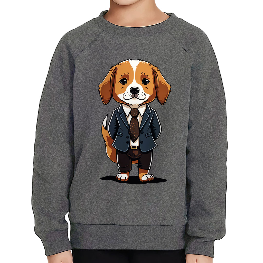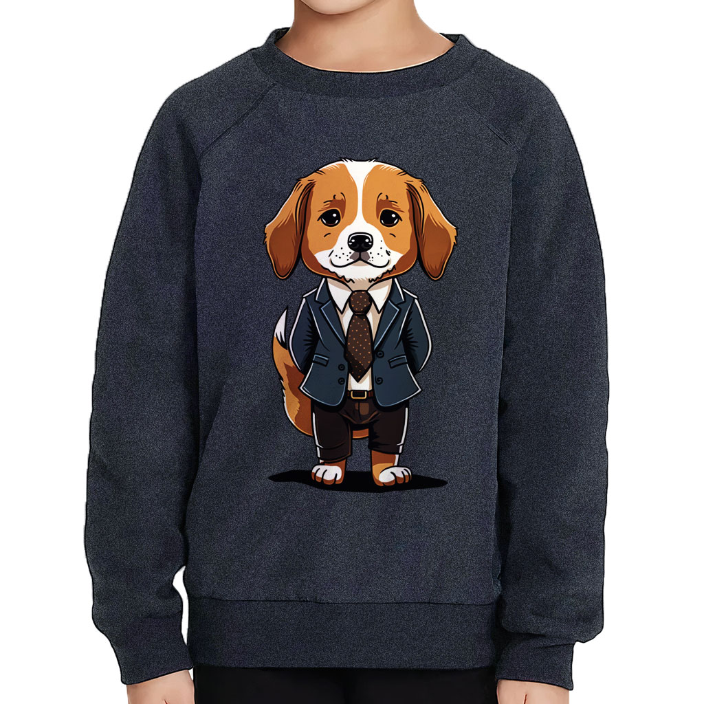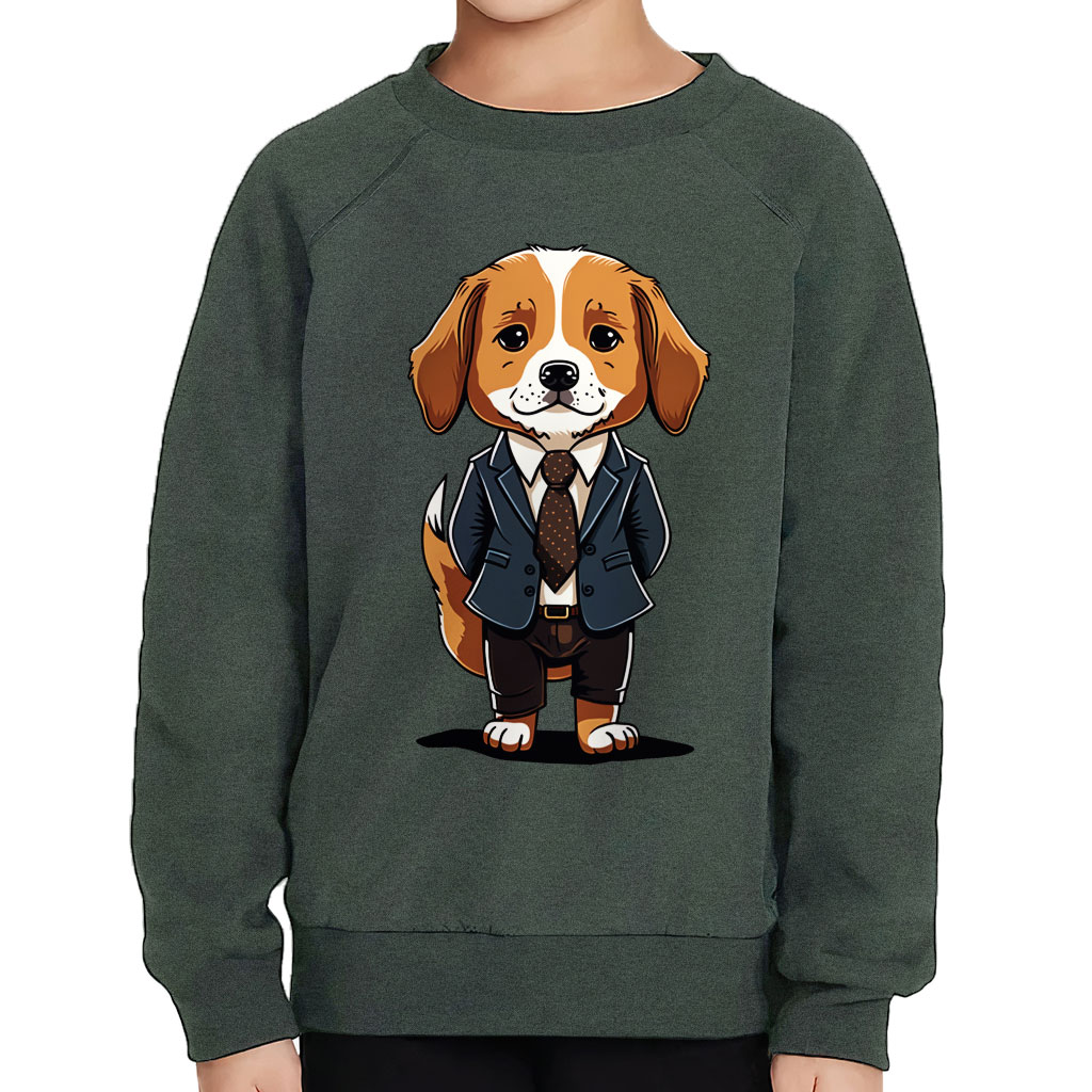 Cute Dog Print Toddler Raglan Sweatshirt – Unique Sponge Fleece Sweatshirt – Colorful Kids’ Sweatshirt