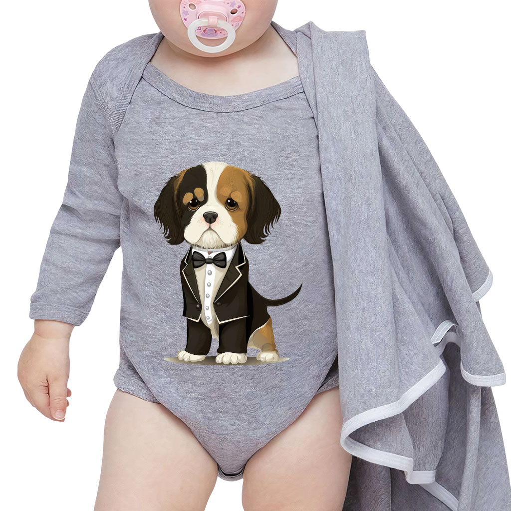 Dog Print Baby Long Sleeve Onesie is made of 100% Cotton which makes it soft on the skin, breathable, lightweight, and comfortable to wear. Made of high-end materials, with sturdy stitching and non-fade colors, these bodysuits are extra-durable.