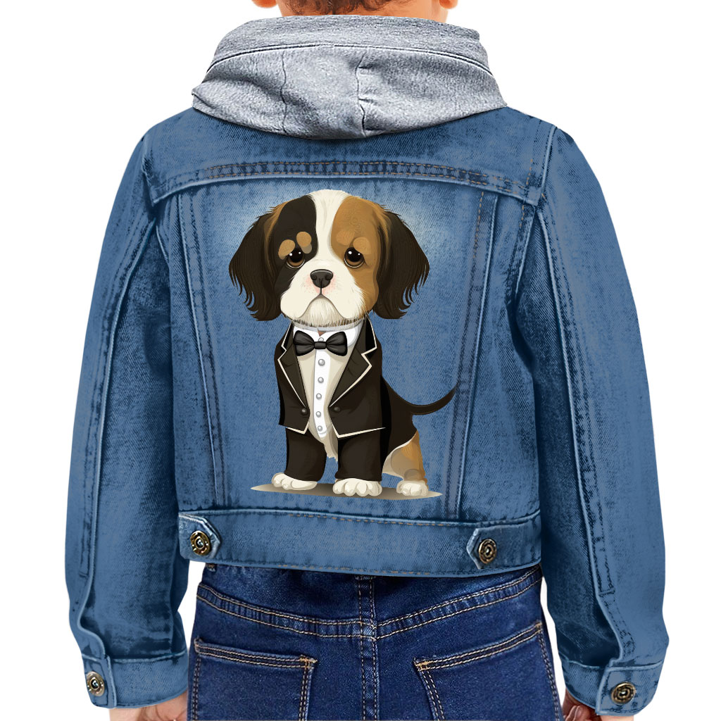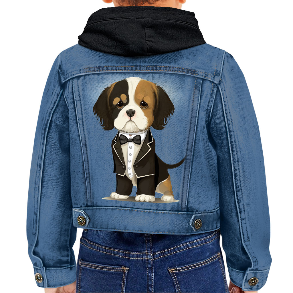 Dog Print Toddler Hooded Denim Jacket – Cute Jean Jacket – Art Denim Jacket for Kids