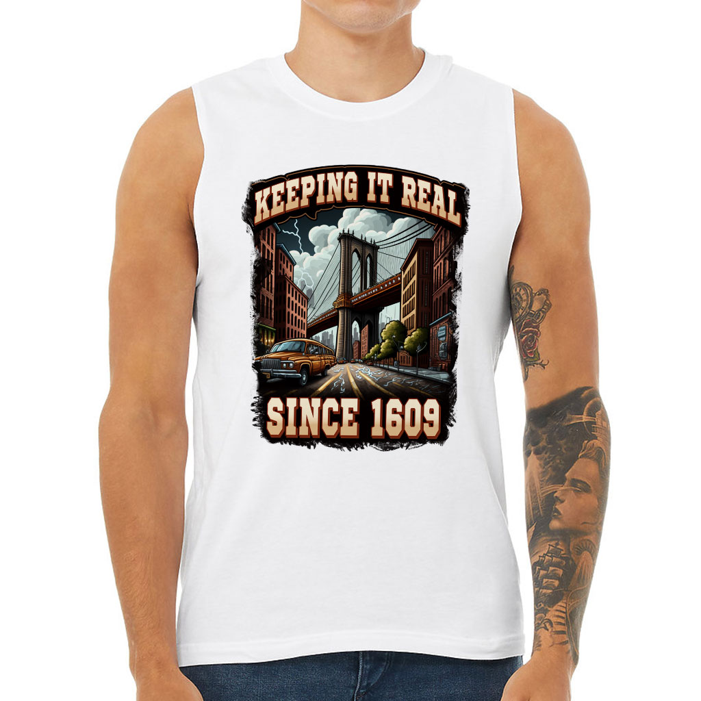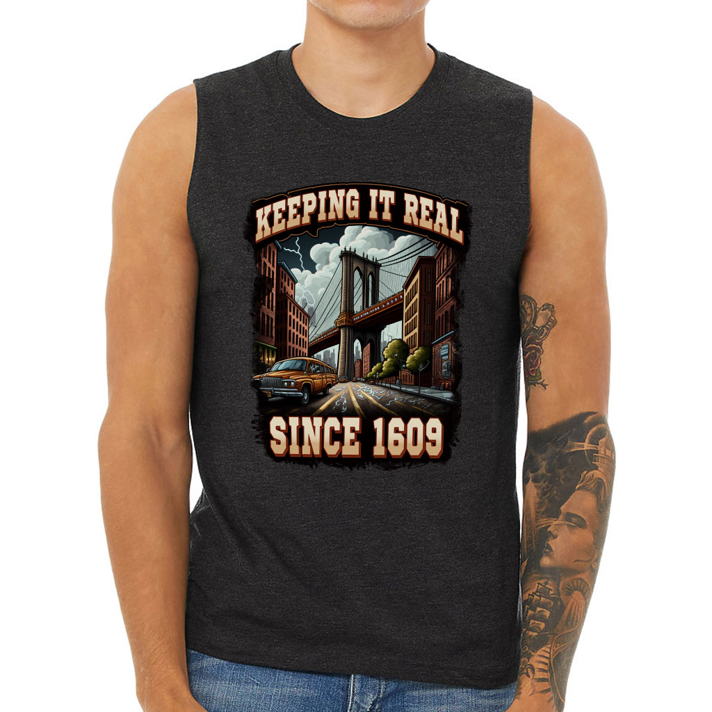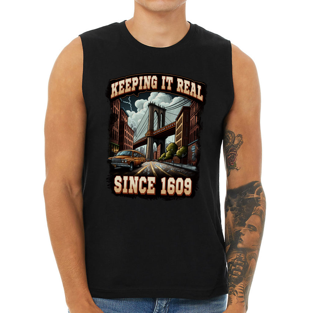 Keeping It Real Men’s Muscle Tank – Brooklyn Bridge Men’s Sleeveless T-Shirt – Trendy Tank