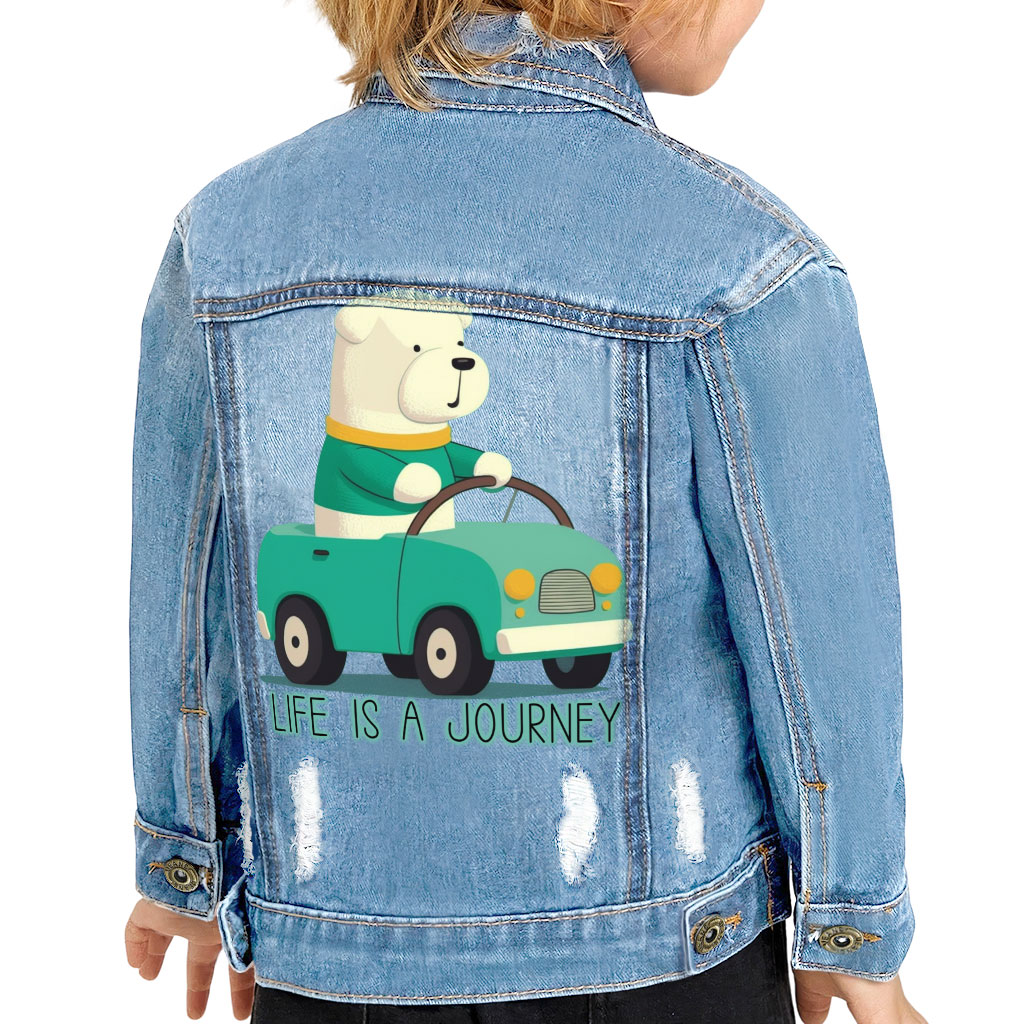 Life Is a Journey Toddler Denim Jacket – Cartoon Jean Jacket – Art Denim Jacket for Kids