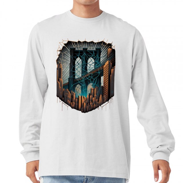 Brooklyn Bridge Long Sleeve T-Shirt – Illustration T-Shirt – Cool Design Long Sleeve Tee