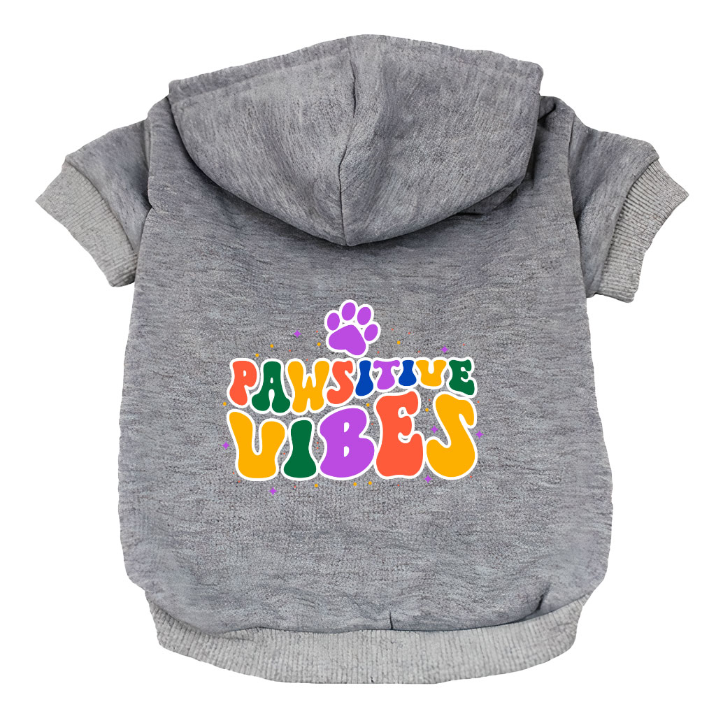 Comfortable, breathable coat to keep your dog warm in cold weather. Pawsitive Vibes Dog Hoodie is designed for winter or autumn weather, it has ribbed sleeves and hem for a comfy fit.