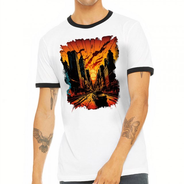 City Skyline Ringer T-Shirt – Landscape T-Shirt – Cool Ringer Tee