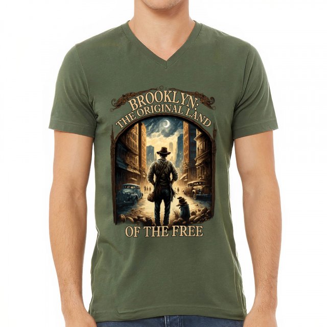 Land Of the Free V-Neck T-Shirt – Brooklyn Design T-Shirt – Patriotic V-Neck Tee