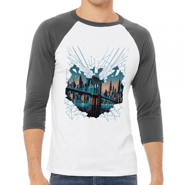 Brooklyn Bridge Baseball T-Shirt – Illustration T-Shirt – Cool Design Baseball Tee