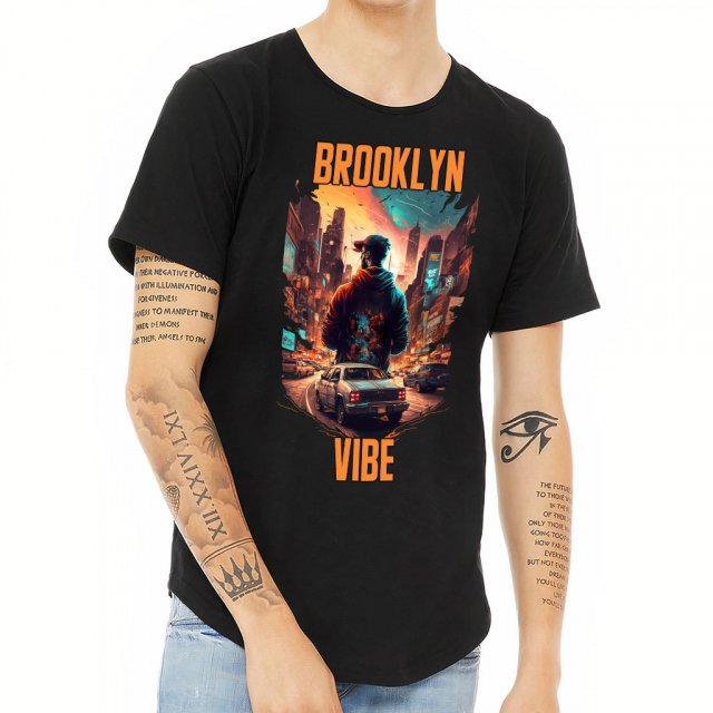 Brooklyn Design Curved Hem T-Shirt – Cool Art T-Shirt – Cool Graphic Curved Hem Tee