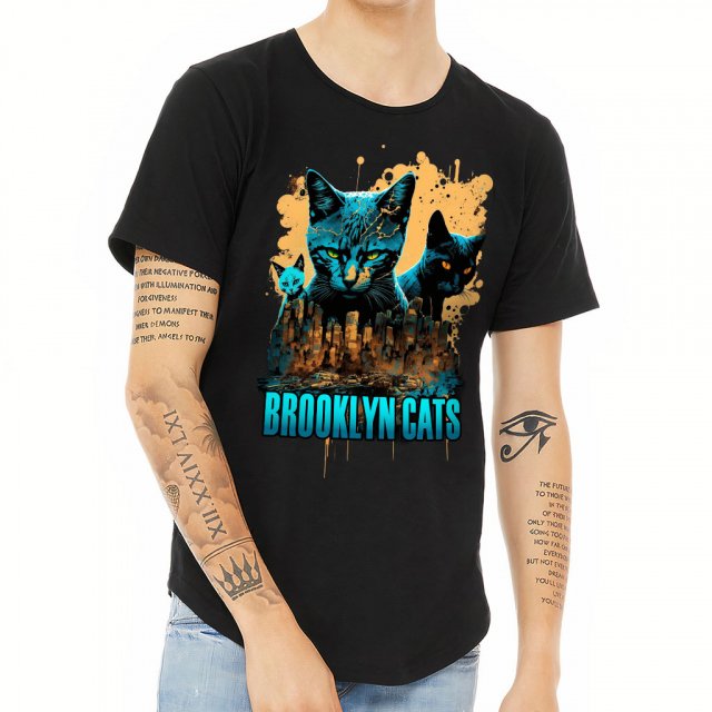 Brooklyn Cat Curved Hem T-Shirt – Funny T-Shirt – Themed Curved Hem Tee