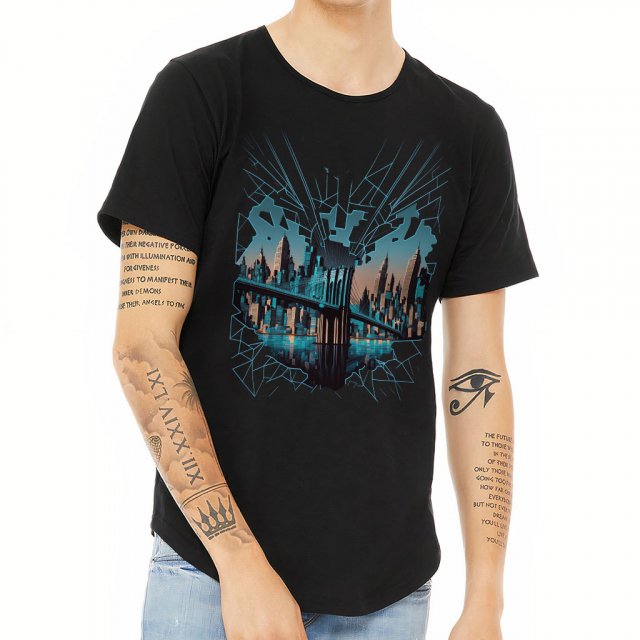 Brooklyn Curved Hem T-Shirt – Digital Art T-Shirt – Printed Curved Hem Tee