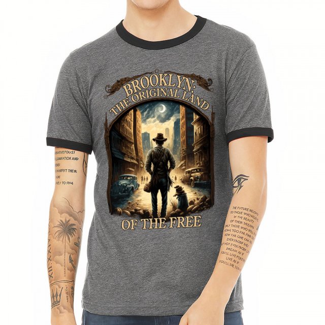 Brooklyn Design Ringer T-Shirt – Cool Art T-Shirt – Cool Graphic Ringer Tee