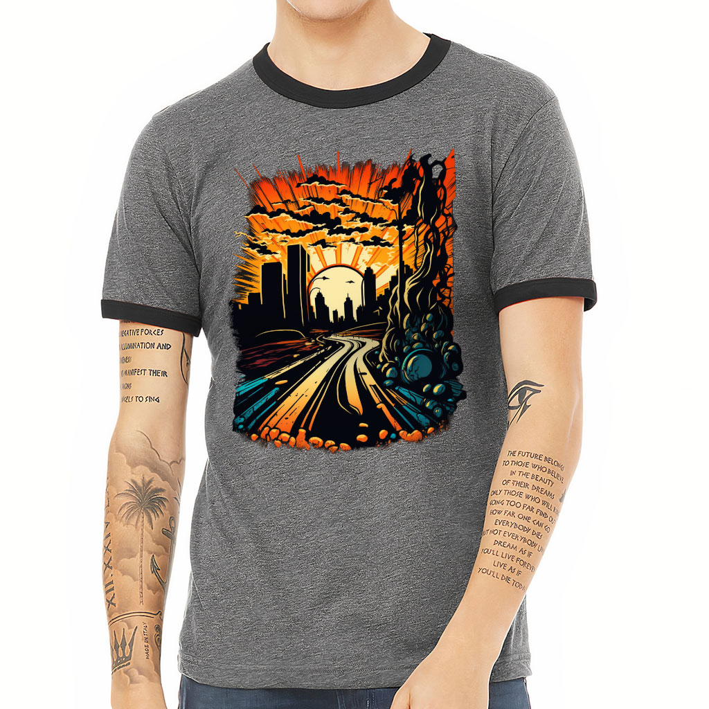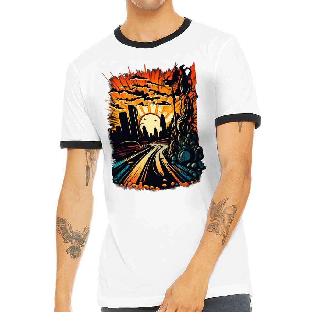 Skyline Ringer T-Shirt – Sunset T-Shirt – Landscape Ringer Tee